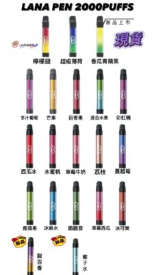 百香果, 彩虹糖, 草莓牛奶, 草莓西瓜, 超級薄荷, 多汁葡萄, 混合水果, 可樂荔枝芒果, 檸檬蛋撻, 青蘋果, 深海冰泉, 水蜜桃, 酸百香, 鐵觀音, 西瓜, 香瓜, 青蘋果, 椰子水